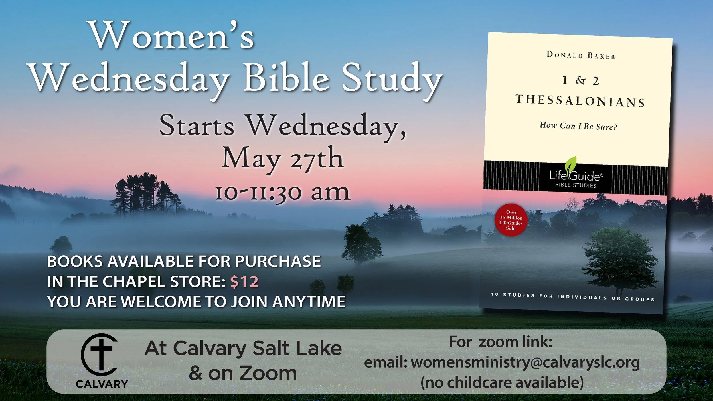 OUR WEDNESDAY WOMEN'S BIBLE STUDY IS HELD AT CALVARY SALT IN THE REIGN FOREST AND IS ALSO AVAILABLE ON ZOOM. Email: womensministry@calvaryslc.org
