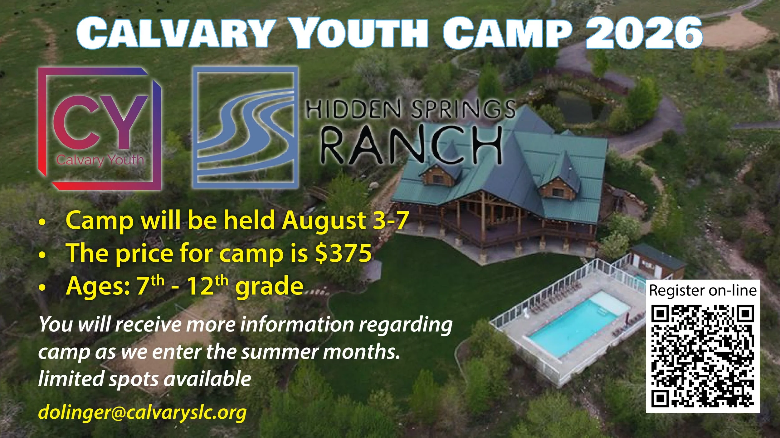 Youth Camp 2026 will be located at Hidden Springs Ranch. Camp will be held August 6-10. The price for camp is $375. Once you complete the registration you will receive a confirmation email. This can, and will be a life-changing experience for your children. Pray for our youth as they grow in Christ! Register your student HERE